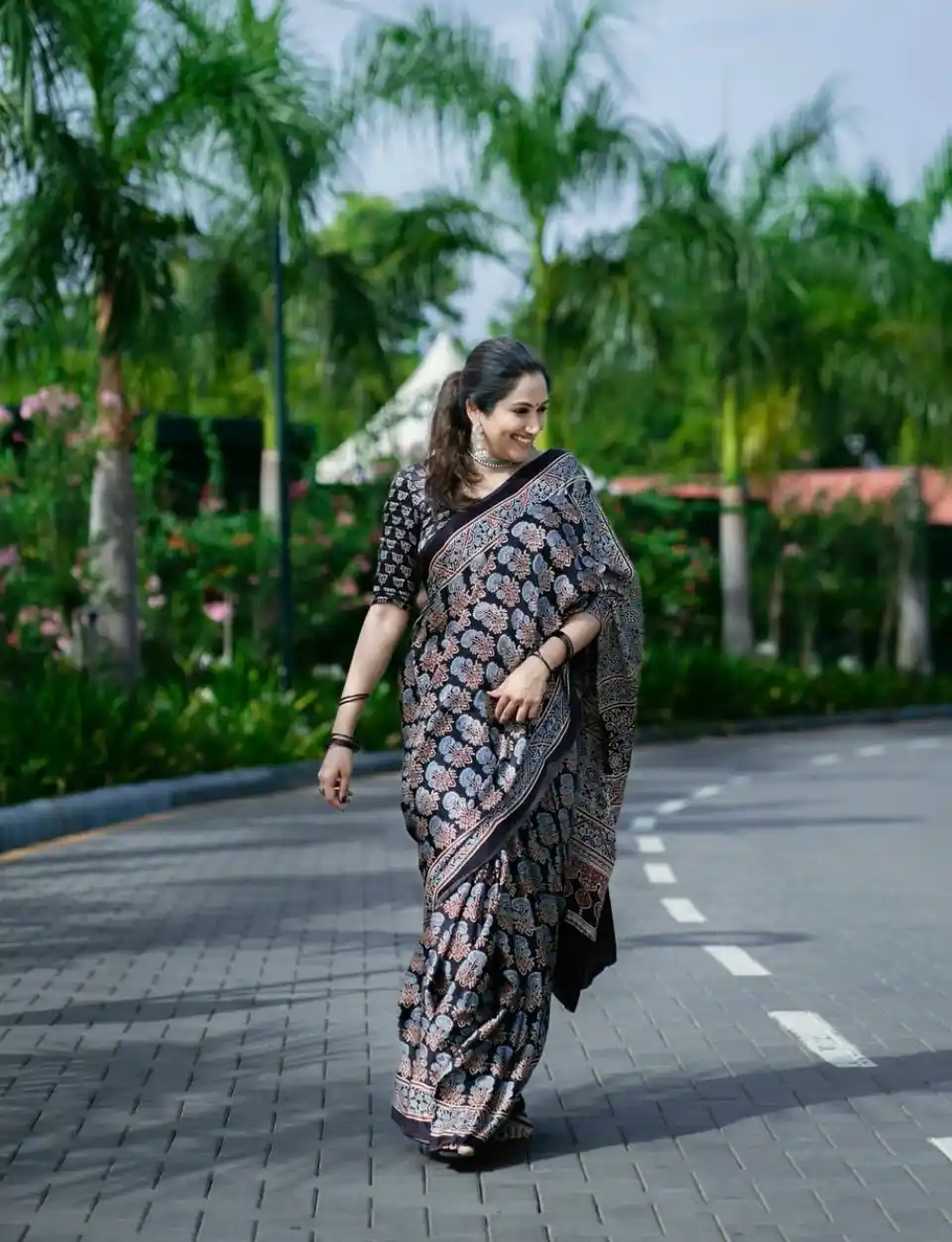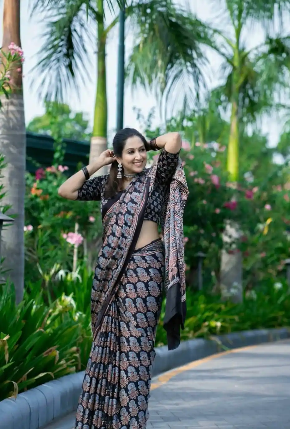 BLACK AJRAKH SAREE